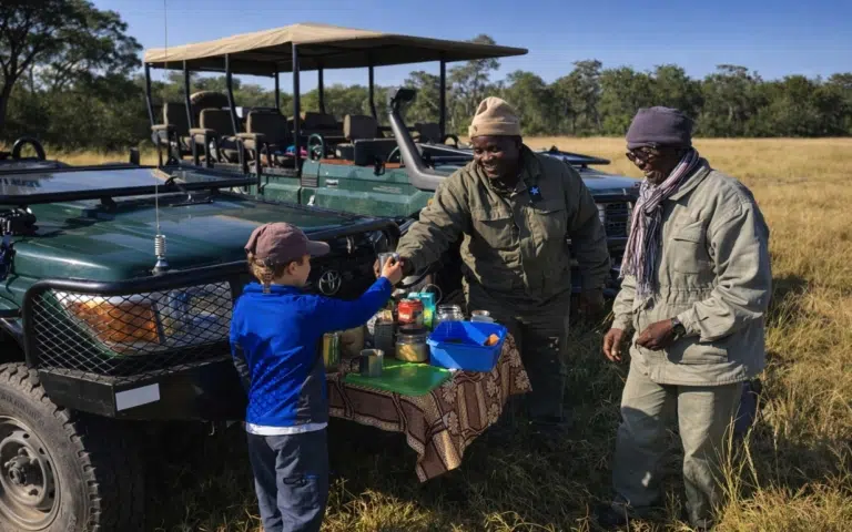 Nos safaris sont accompagnés par des guides locaux, tous titulaires de la Licence professionelle botswanaise de guide, experts de la faune et de la flore du Botswana, ils vous aideront à découvrir les trésors cachés du pays. Que vous soyez novice ou voyageur aguerri, leurs connaissances approfondies et leur passion pour la nature enrichiront votre expérience. Ils s’assurent de votre sécurité tout au long de l’expédition, tout en vous offrant des anecdotes fascinantes et des explications détaillées sur l’écosystème local. Leur mission est de vous faire vivre un safari Botswana inoubliable, en harmonie avec les paysages sauvages du pays.